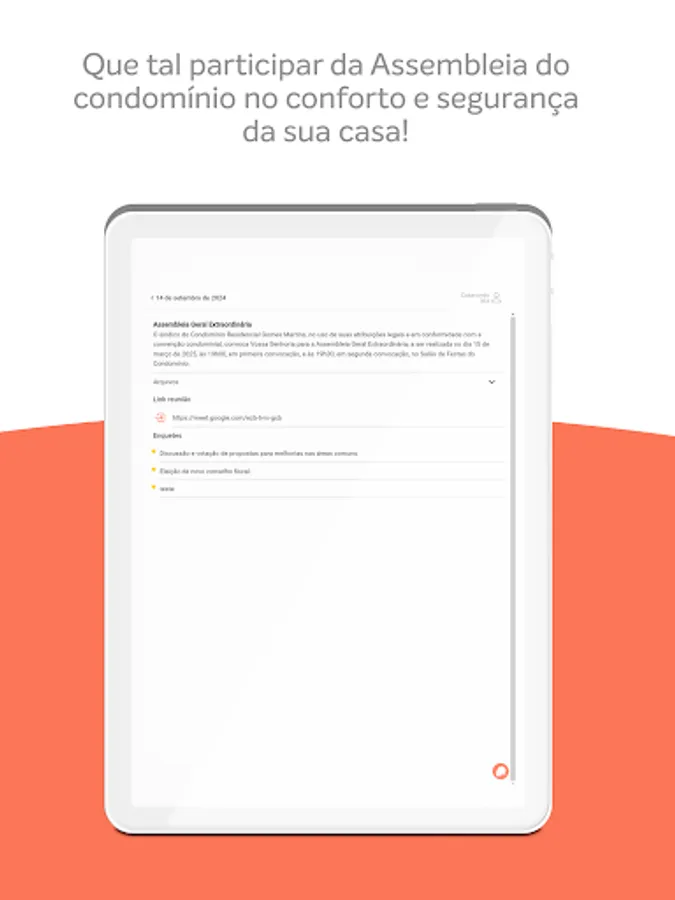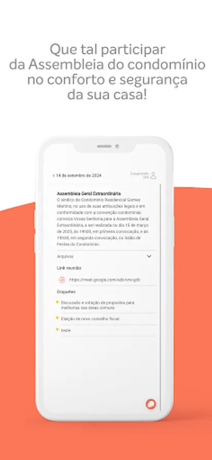 The CASACONDO application is a customized environment, which facilitates communication between residents and the property manager through the reservation of common spaces, such as the gym and party room, meetings held virtually, in addition to being a place where you can notify about lost and found property, carry out surveys about the condominium and even release your guests in advance at the entrance, without having to answer the intercom.