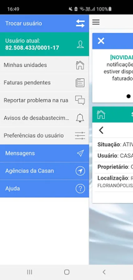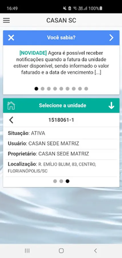 Official application of CASAN (Companhia Catarinense de Águas e Saneamento), which aims to shorten the distance between the company and the population, serving as a direct channel of communication, thus facilitating public access to the services provided by the company and the exercise of citizenship active.
