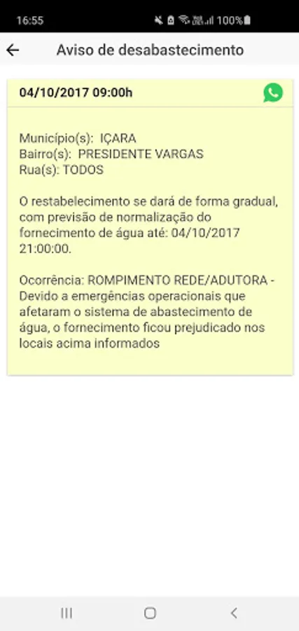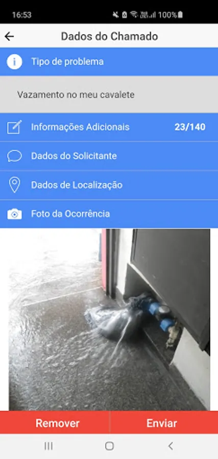 3-) Report problems such as leaks and lack of water in the property or on the street, and photos can be inserted and, when necessary, the geolocation of the occurrence;