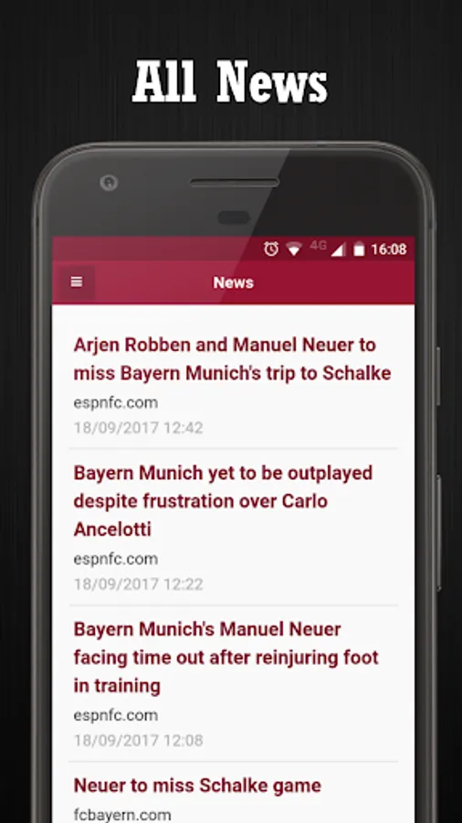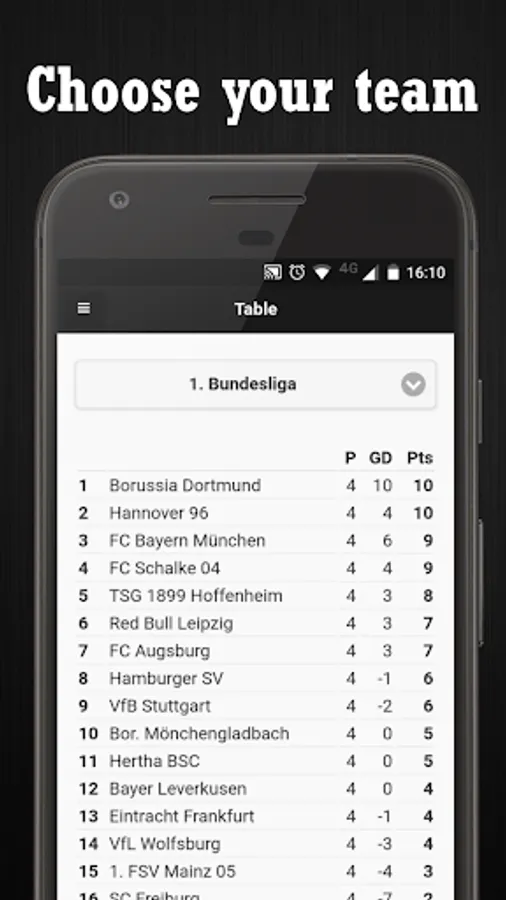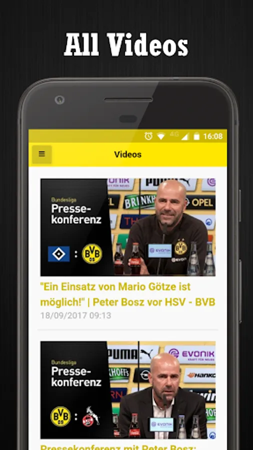 With the application "German Soccer News", you can see all the news, videos and news of your team.