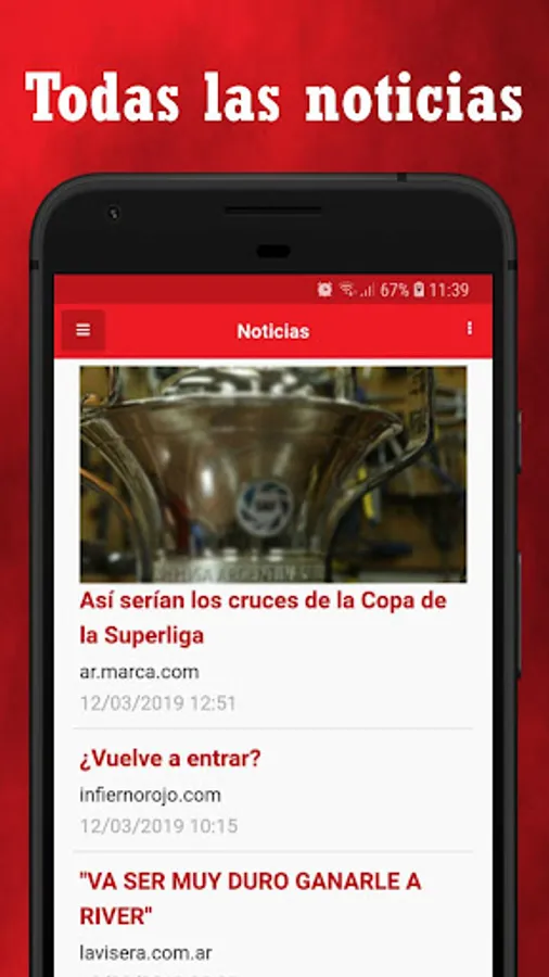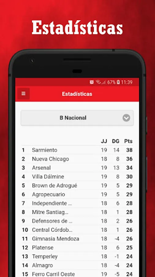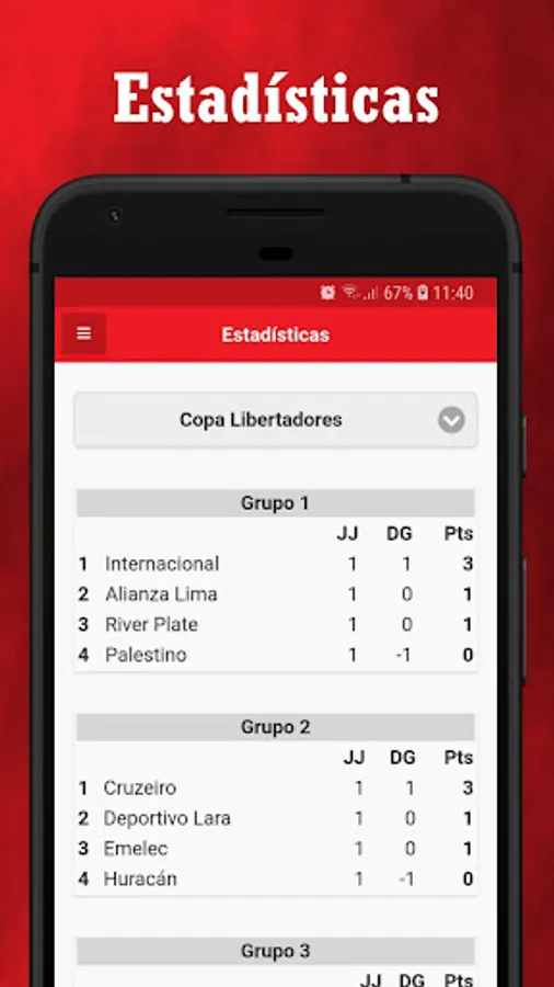 - Statistics: follow the classification of the first division (Superliga), second division (B Nacional) and Libertadores
