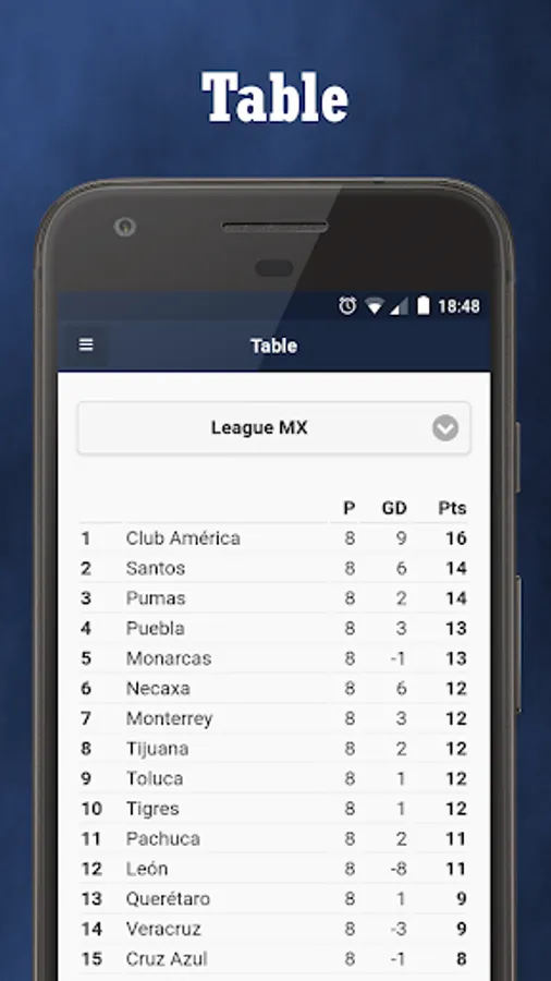 - Statistics: follow the classification of Liga MX