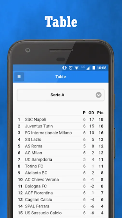 - Table: follow the table of Serie A