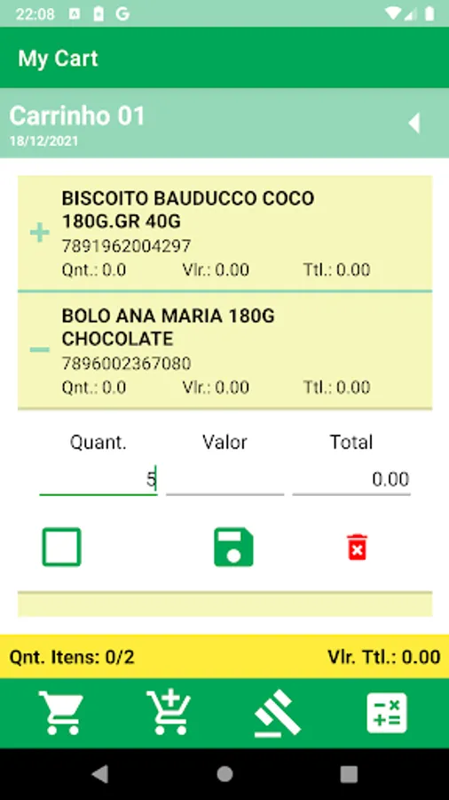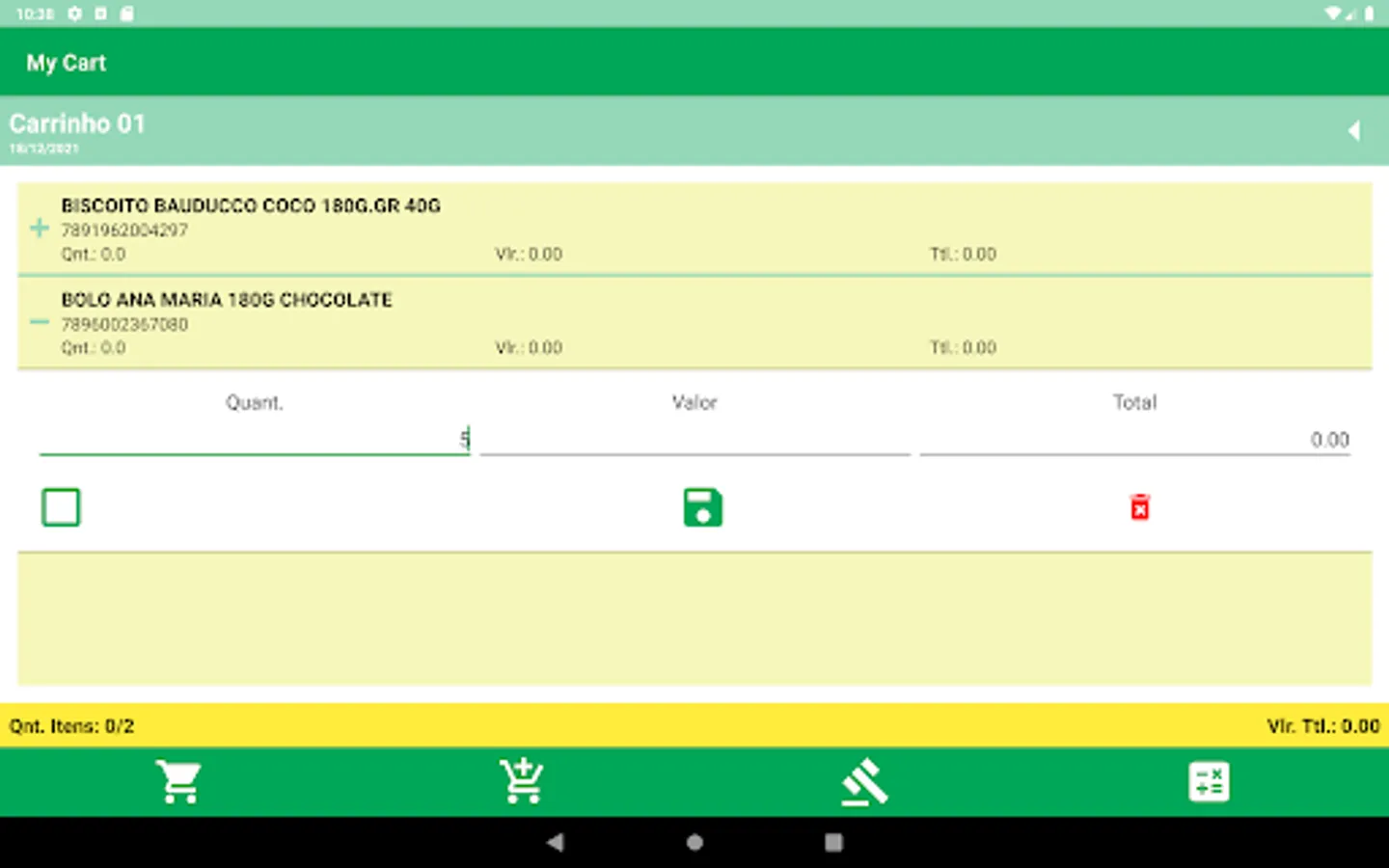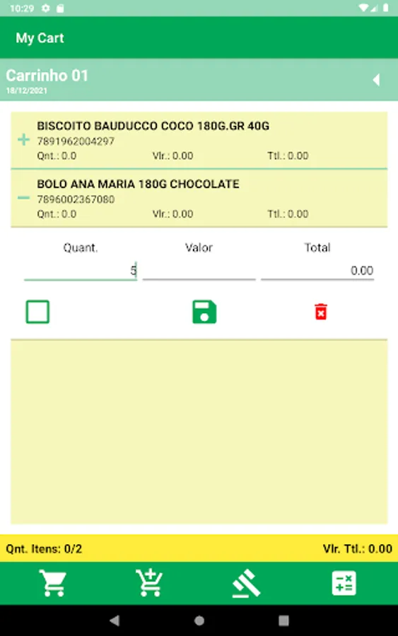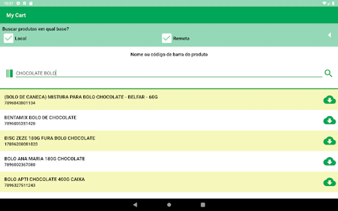 With the cart created, you can include products in it, for this inform the product name or its barcode, then send the My Cart application to search, which can be local and/or remote.