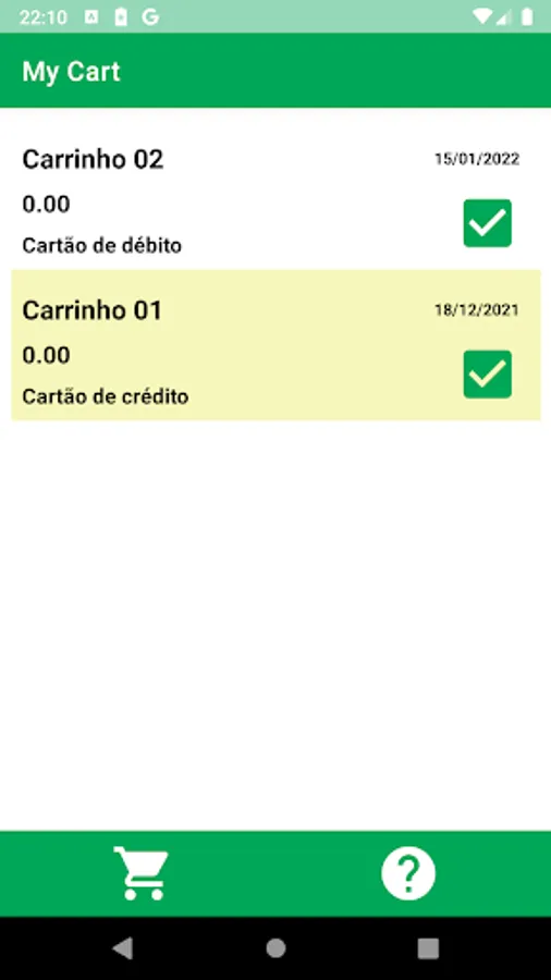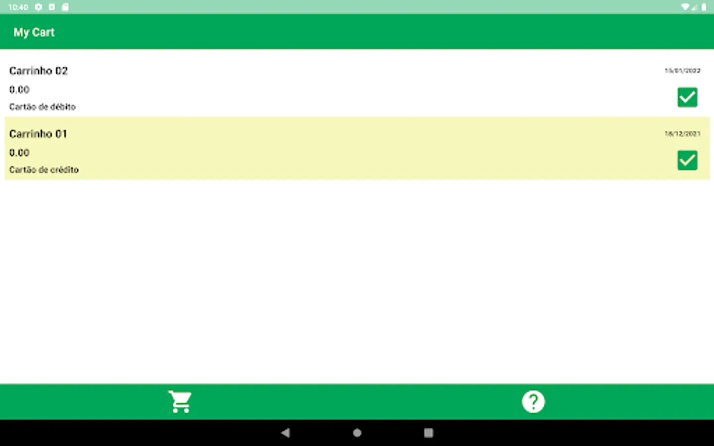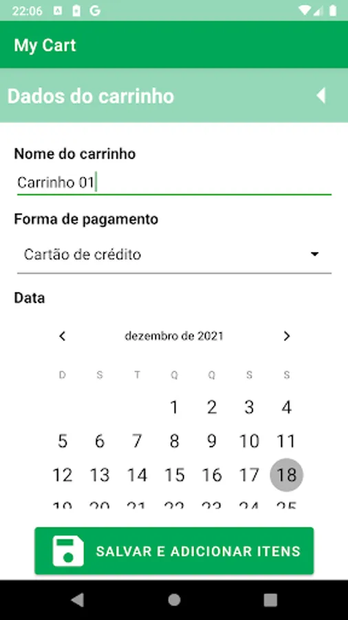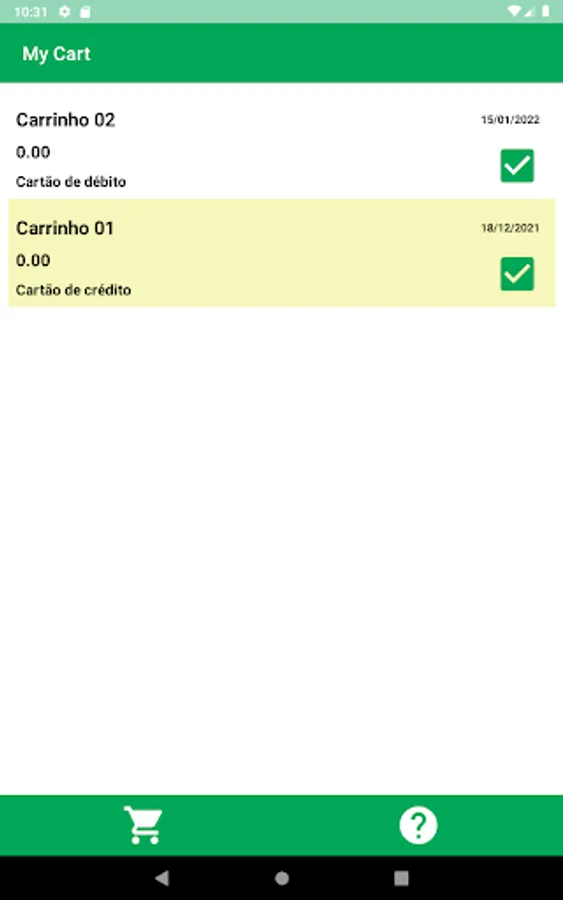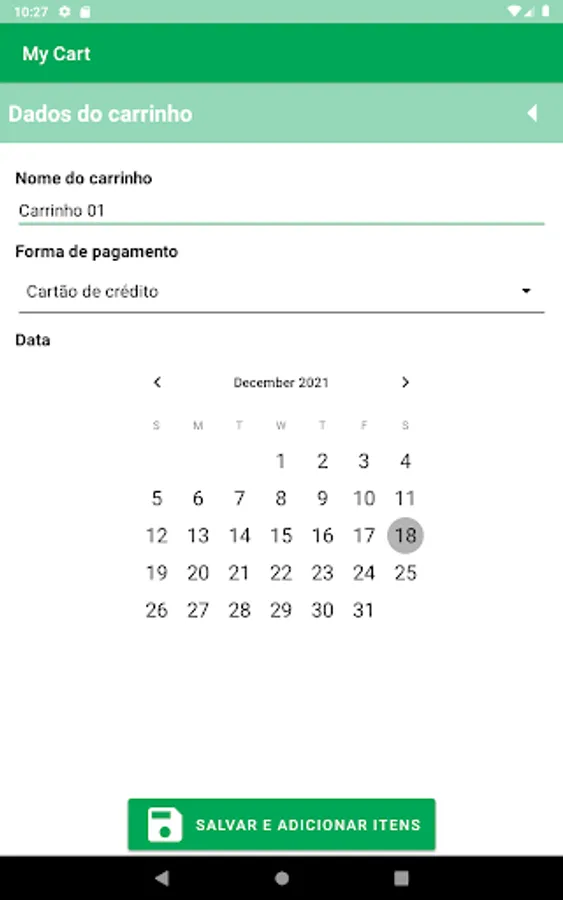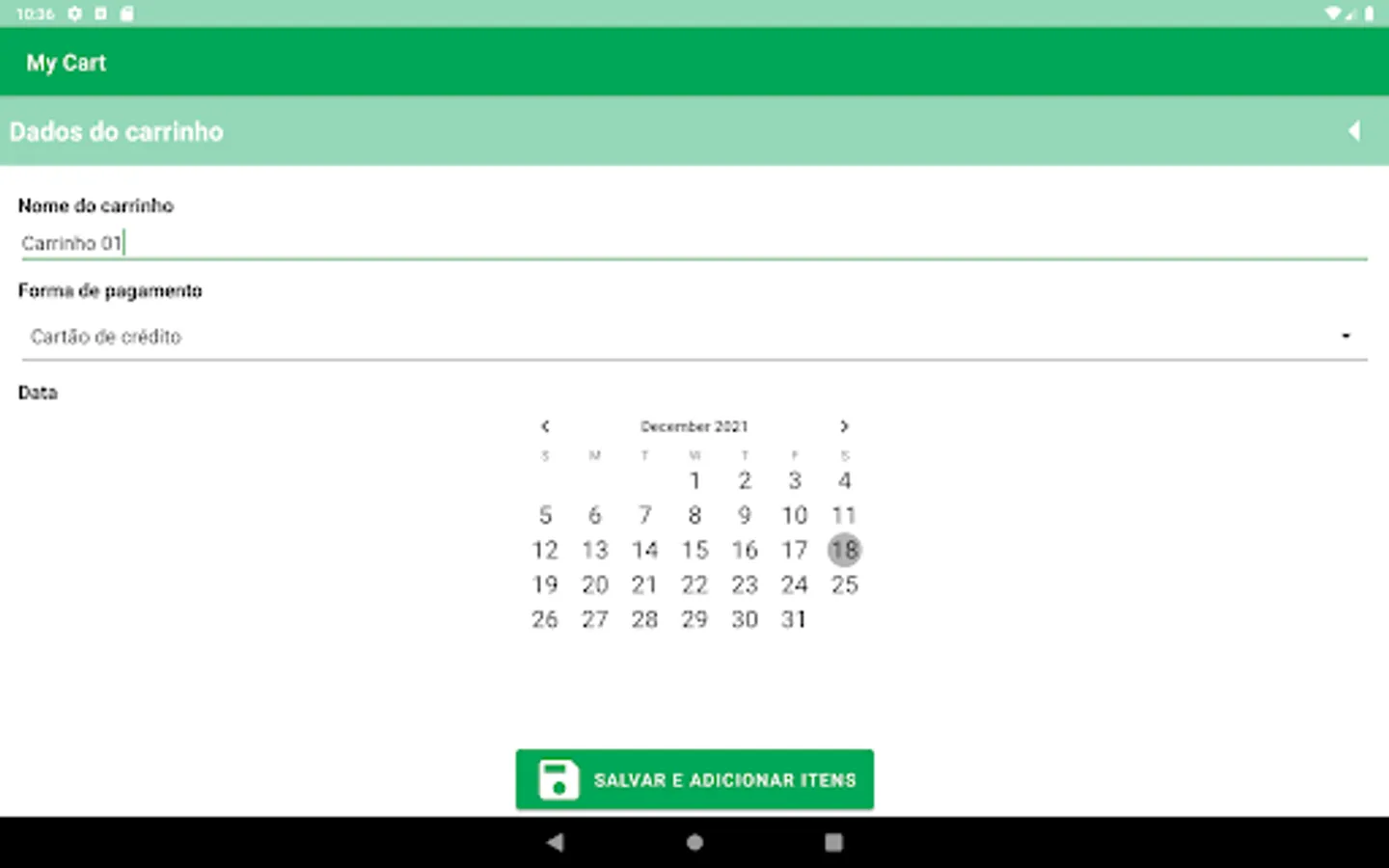 With the cart created, you can include products in it, for this inform the product name or its barcode, then send the My Cart application to search, which can be local and/or remote.