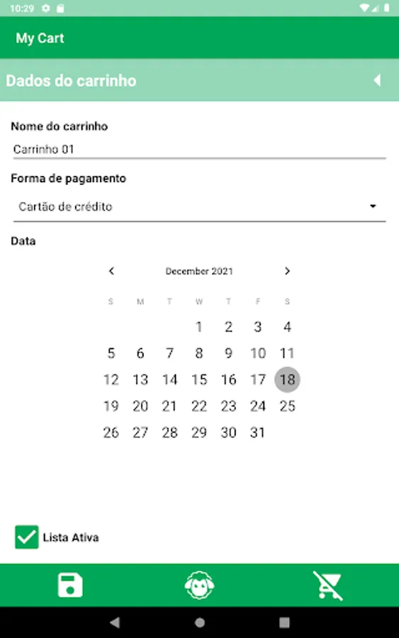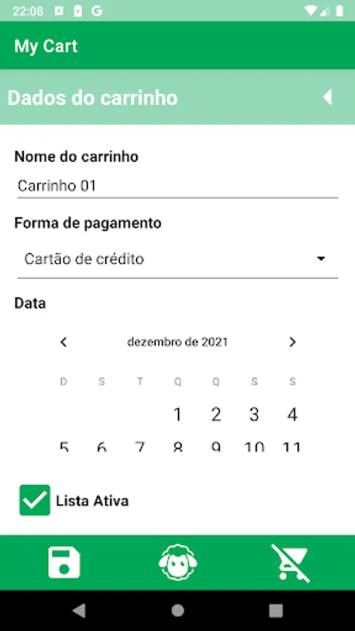 When you create a new shopping cart, you are asked for a name for it, a method of payment and a date of possible trip to the supermarket. But all these data can be changed at any time.
