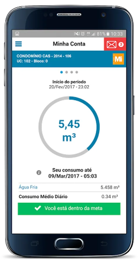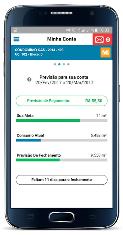 Set receiving daily information on consumption with making closing forecast R $ and m³.