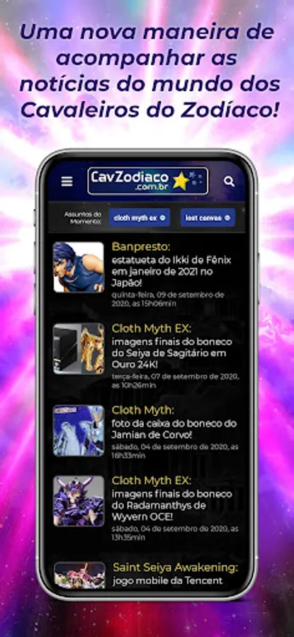 Stay on top of everything that happens in the world of the Knights of the Zodiac (Saint Seiya) in Brazil and worldwide. Collection with almost 11 thousand news published since 2002, on the oldest and most traditional website of the series, CavZodiaco. A true historical record of the series!