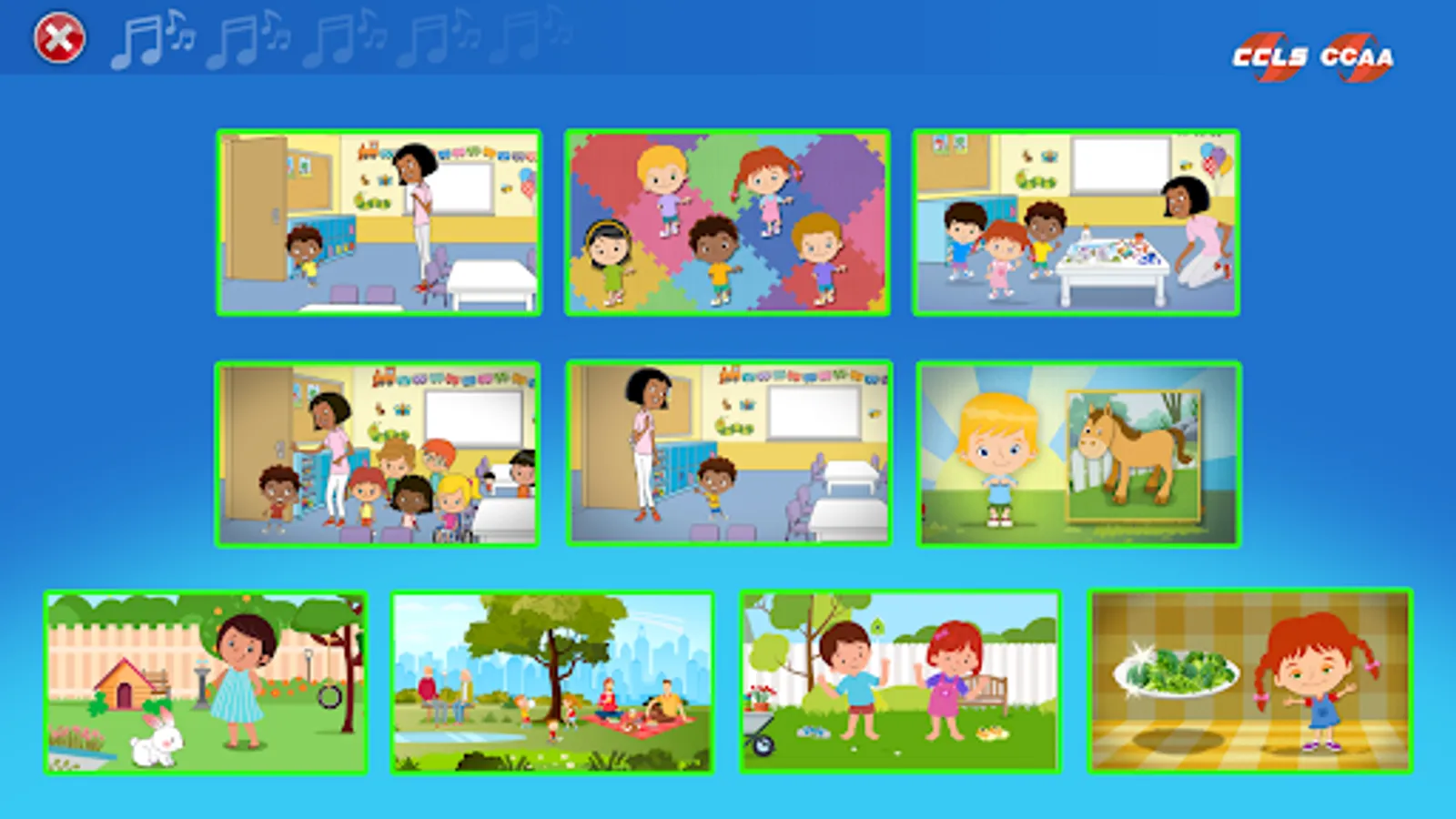 -Sing Along that allows the adult to sing songs in English with the child;