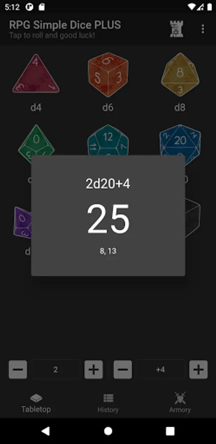 RPG Simple Dice is the most easy to use dice roller app for tabletop RPG games.
