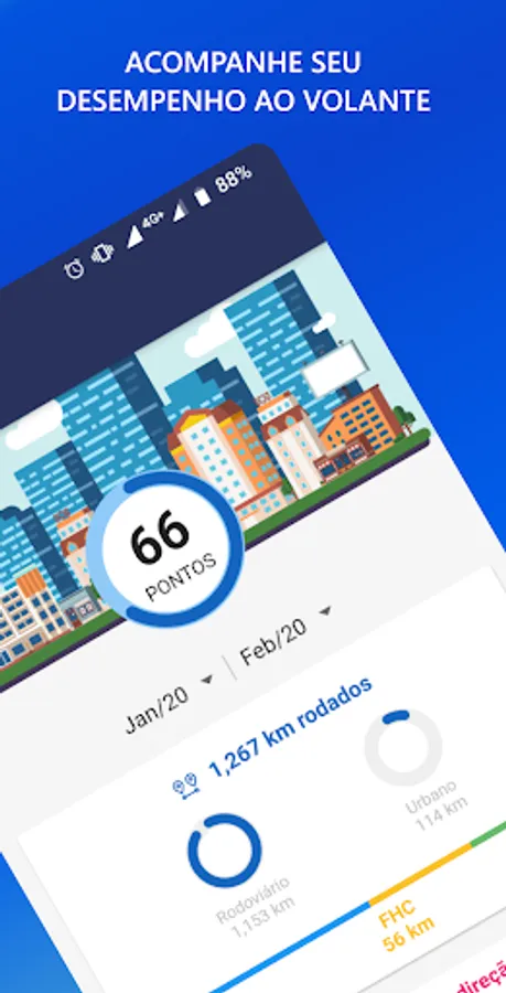 - View statistical data of vehicle usage, such as km run during the week, weekend, business hours, outside business hours, among others.