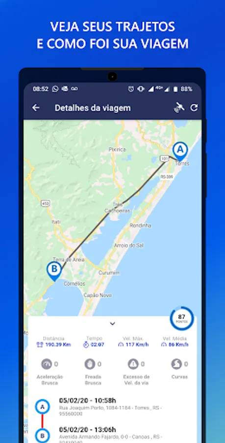 - Draw route between your cell phone and the vehicle (ideal for those who live forgetting where they parked);