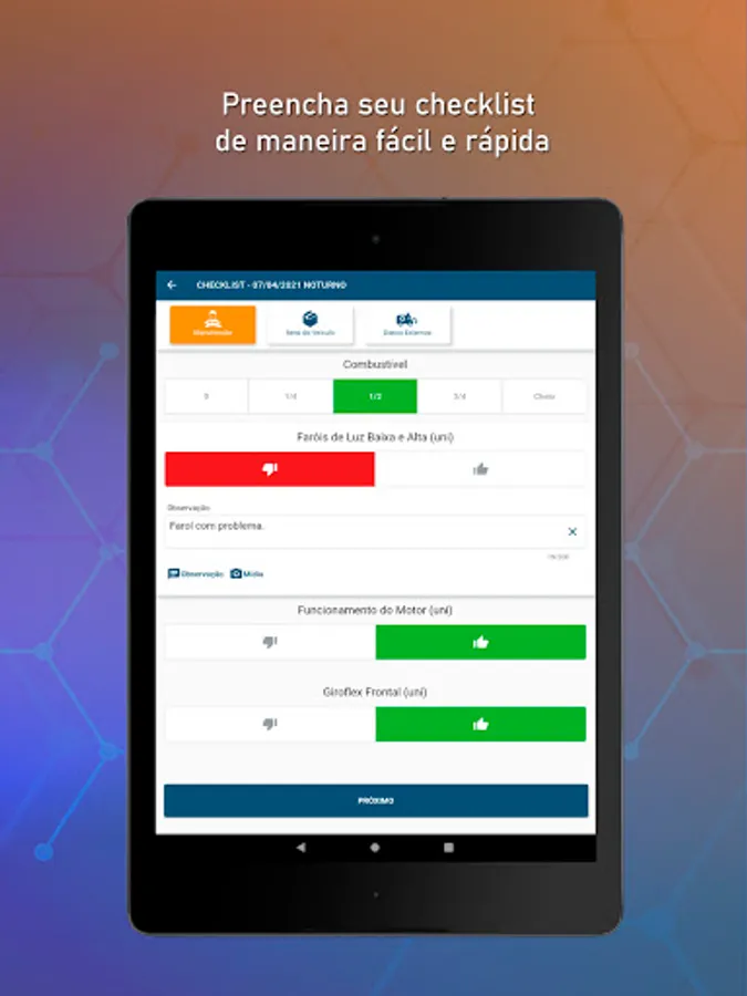 Through the App, on-board professionals can complete the vehicle checklist and send it to the Regulation Center.