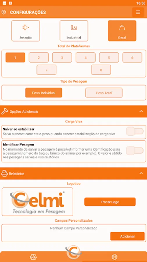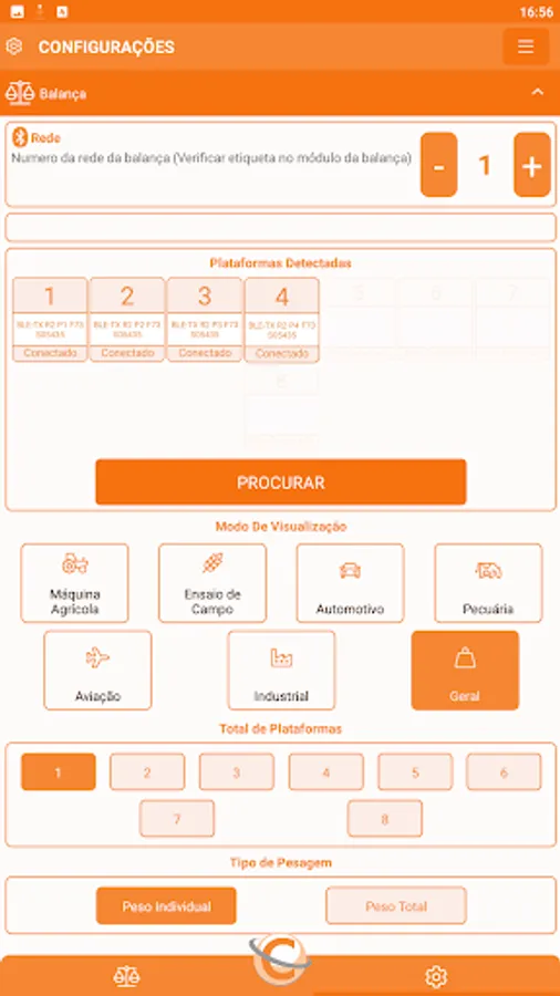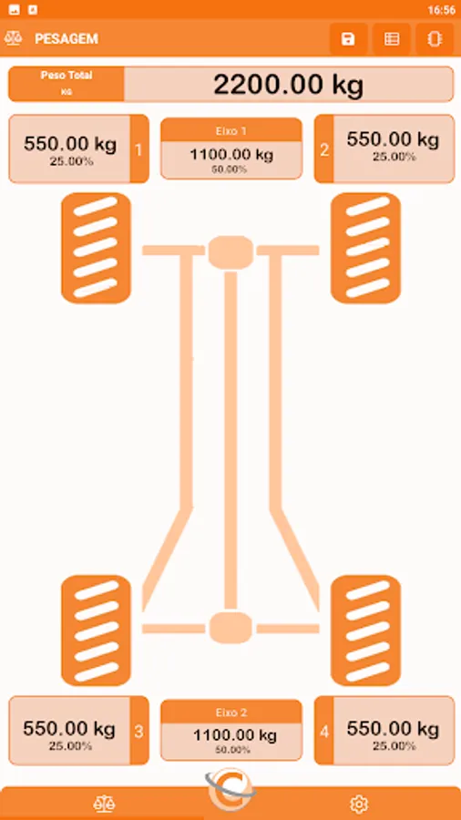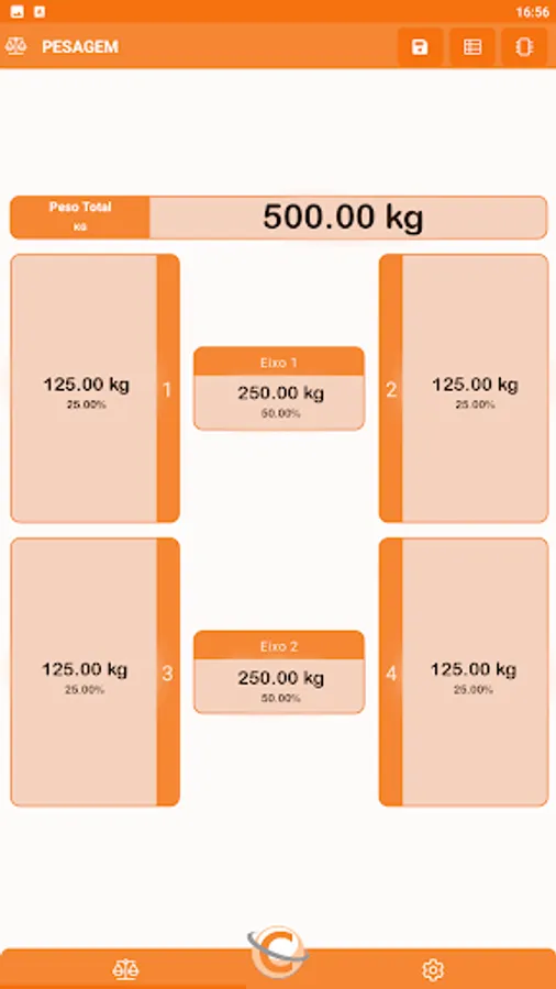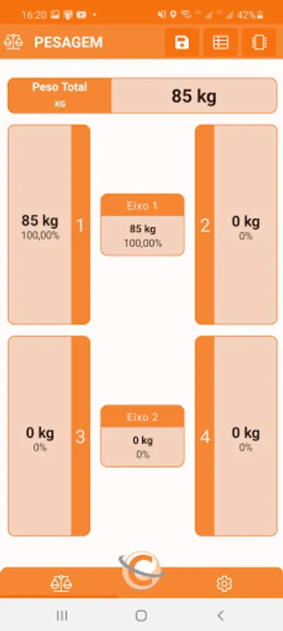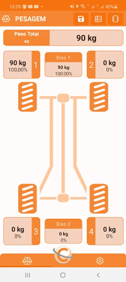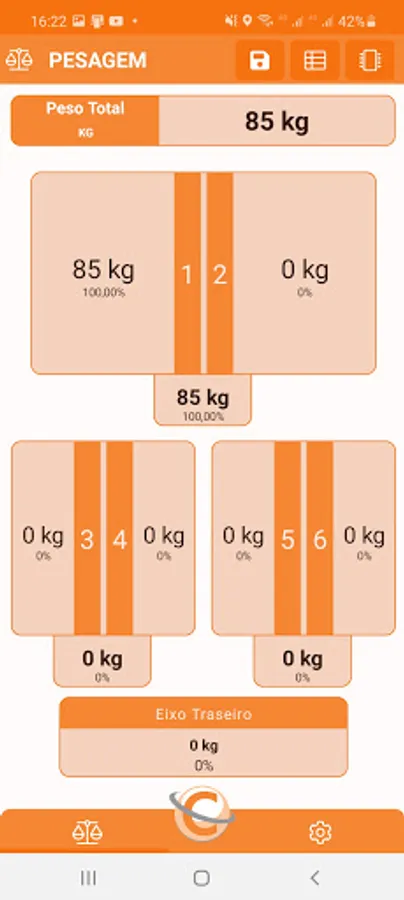 The AppCelmi connects the Celmi Wireless scales showing in real time the information of the total weight, individual weight, axle weight and percentage of weight and axes in relation to the total weight.