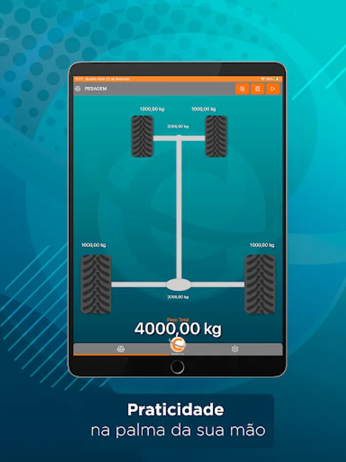 The App displays weighing information in real time, with total weight, weight per axle and weight per platform.