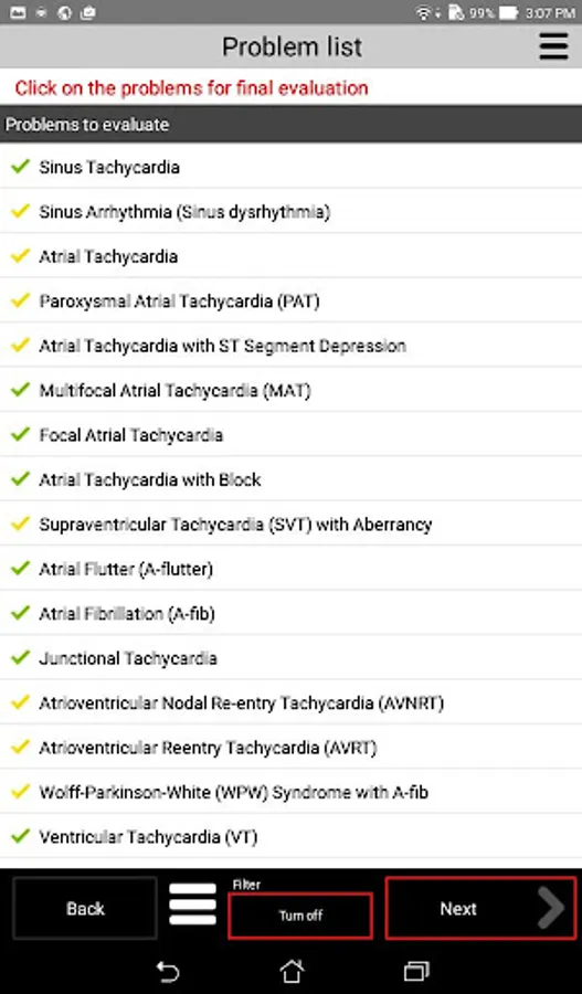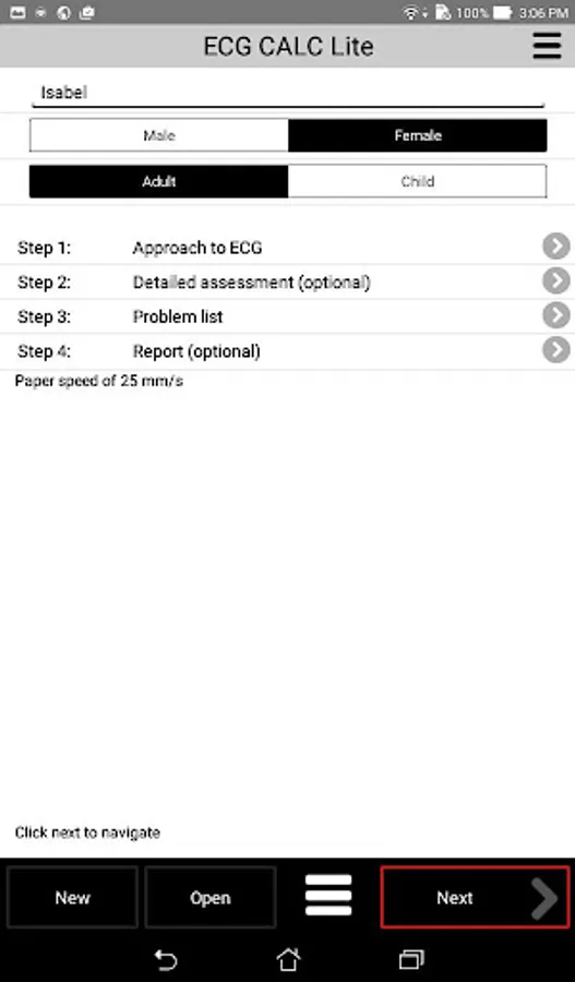 Almost 100 of the most common rhythms seen are included, and can be identified by answering 12 steps. Mastering the interpretation of the 12 steps allows a great accuracy in ECG interpretation. ECG CALC could be used for case review or studying.