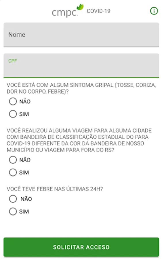 CMPC Taking Care of You is an application of preventive questions to release people's access to CMPC. After filling out the app form, it is necessary to present the QR Code generated to the security guards at the company's entrance. Thus, it will be possible to identify and assist suspected cases, ensuring the health and safety of workers.