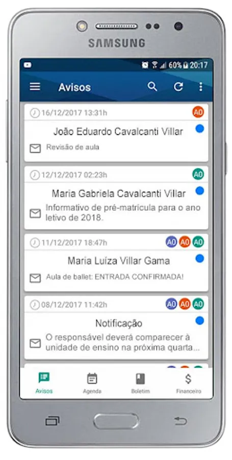 The Central da Escola provides students and guardians with quick and practical monitoring of everything that happens at school.