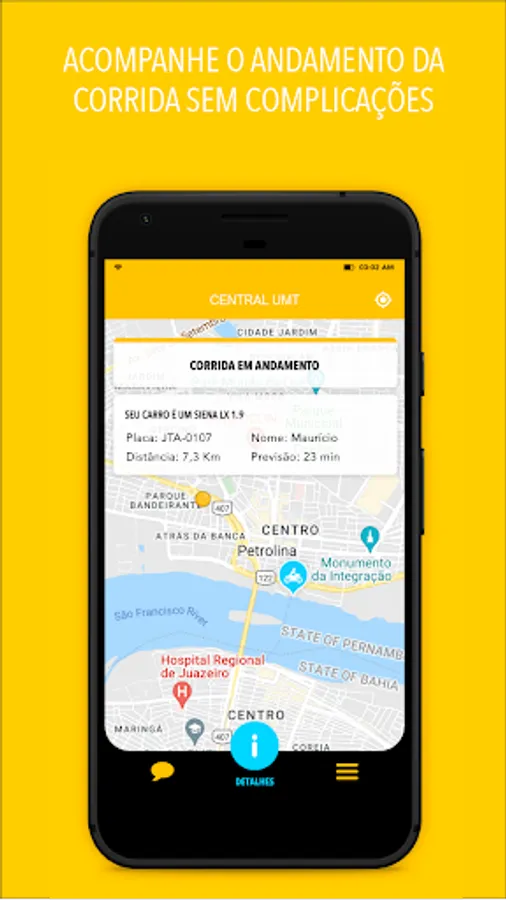Our application allows you to call one of our motorcycle taxis and follow the vehicle's movement on the map, being notified when it is at your door.
