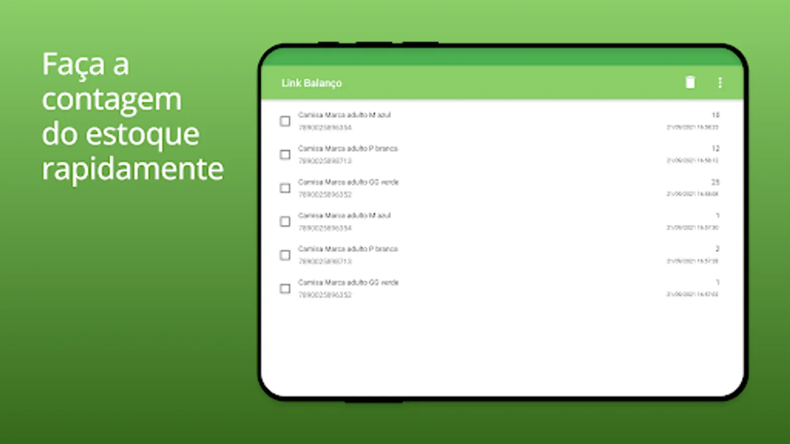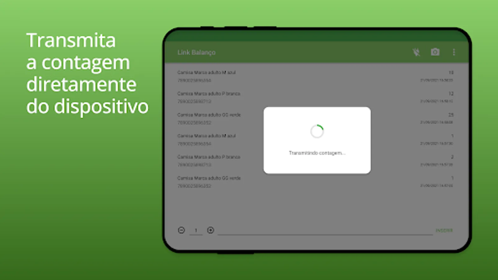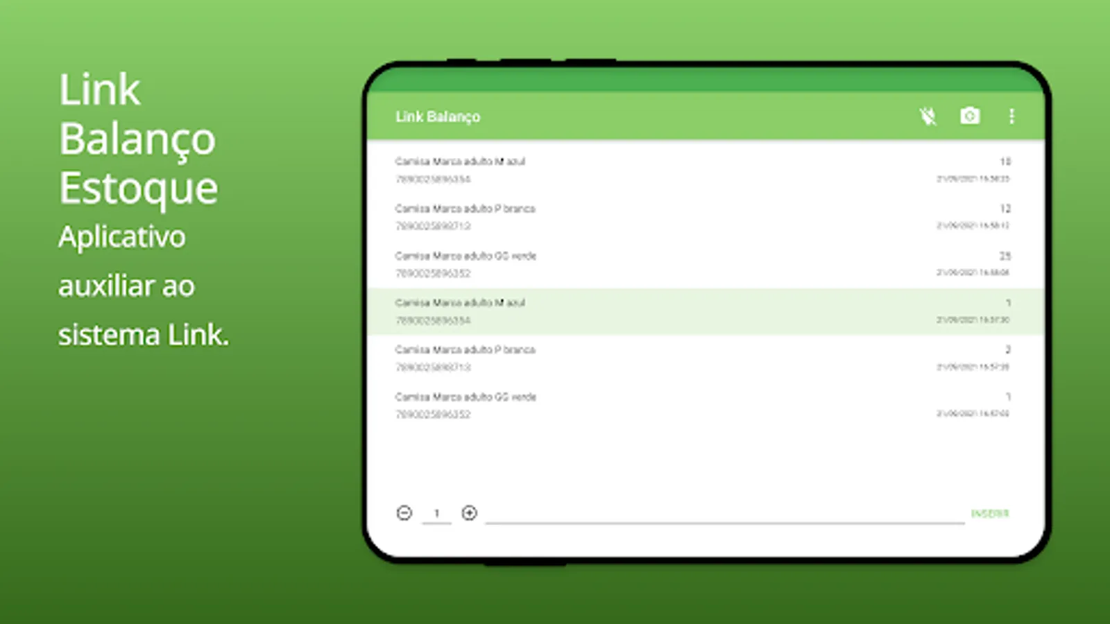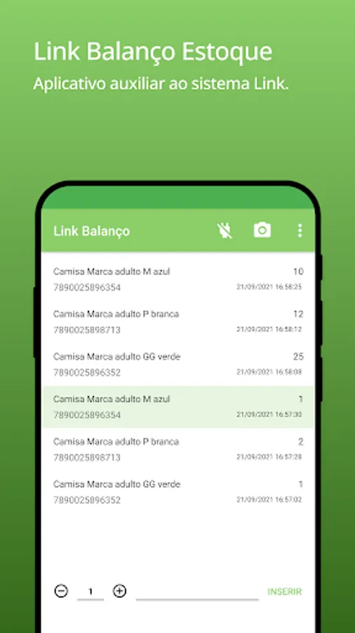The Link Balanço Estoque application allows you to count products through a barcode reader connected to the Smartphone.