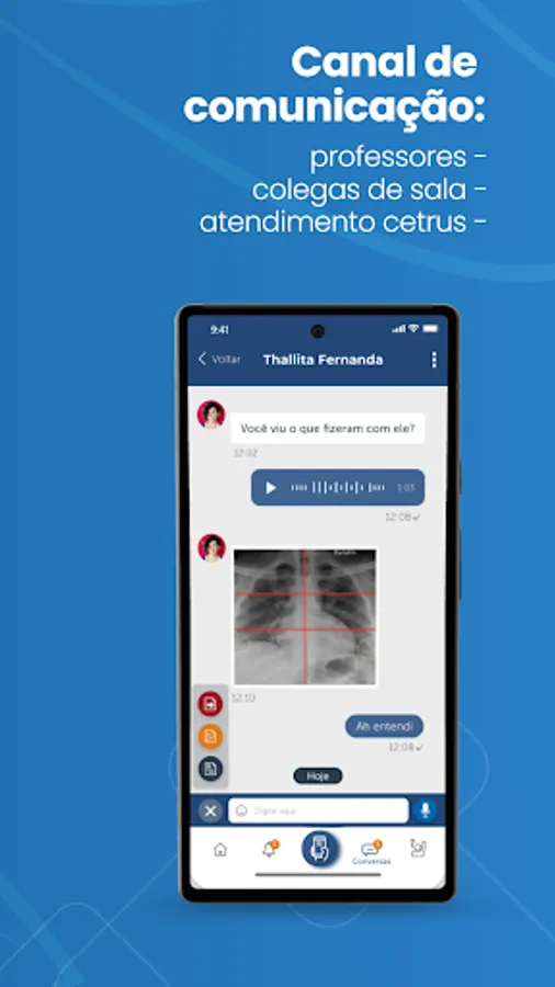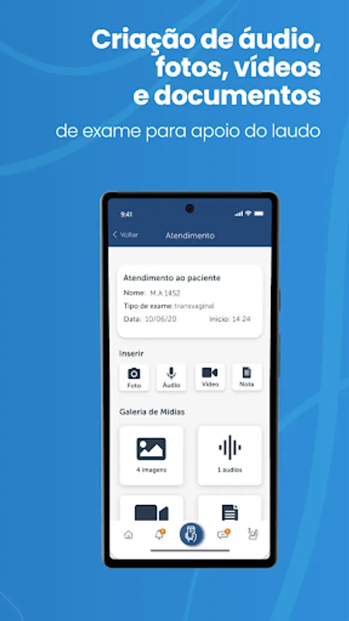 Exam support: In this feature, the student can create files with the information for each patient, storing audios, photos, videos or written notes about the exams, which can be shared with the teacher and colleagues. The resource is still available at the end of the course, for the physician to keep this logbook of his patients.