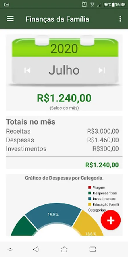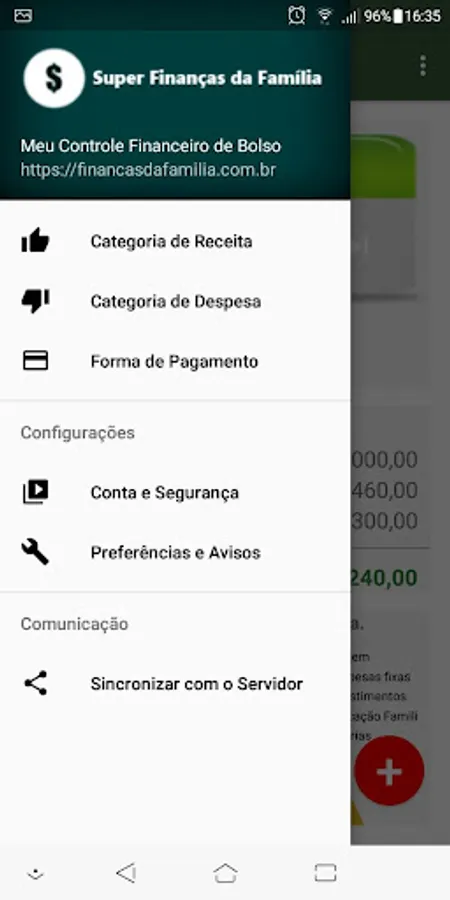 - Generate graphs and follow the evolution directly on the cell phone or on the web through the website https://www.financasdafamilia.com.br
