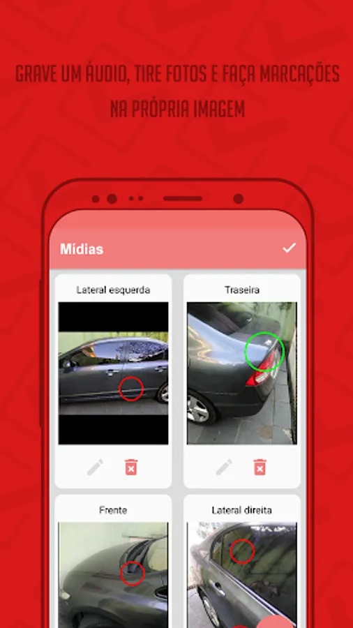 - Intelligent automotive checklist application, capturing photos, audios and videos of the vehicle's status.