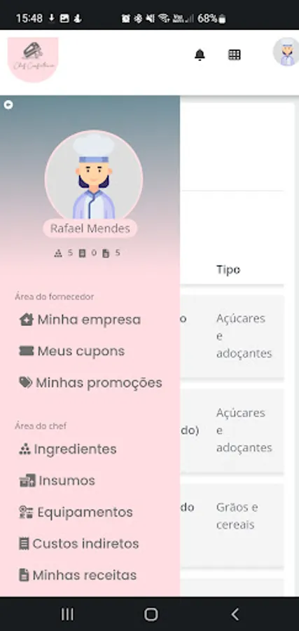 It is possible to register ingredients, equipment, inputs and recipes. Register and receive orders, production and sales.