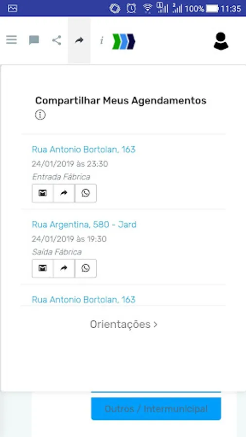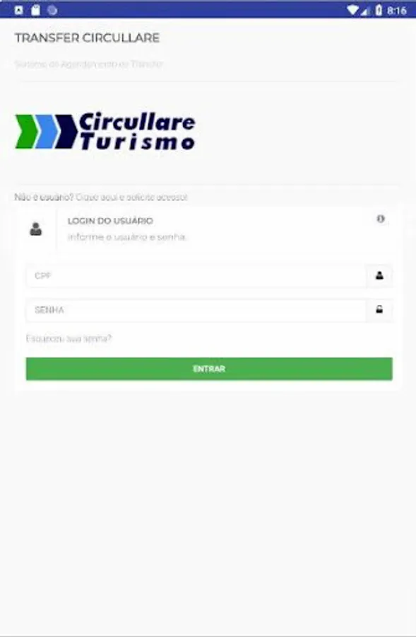 Application for scheduling corporate transfer to the company Circullare Turismo