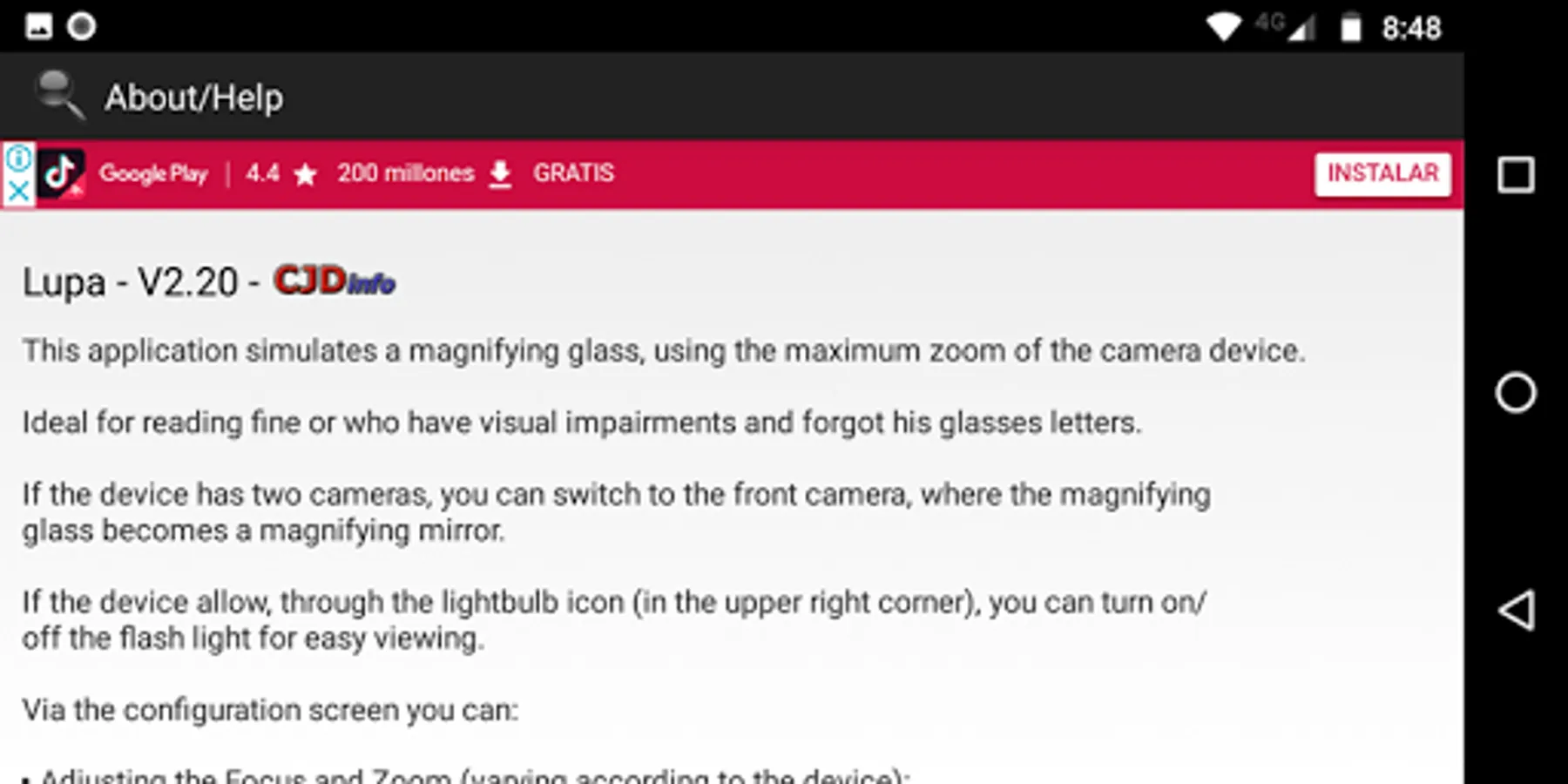 This application simulates a magnifying glass, using the maximum zoom of the camera device.