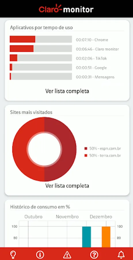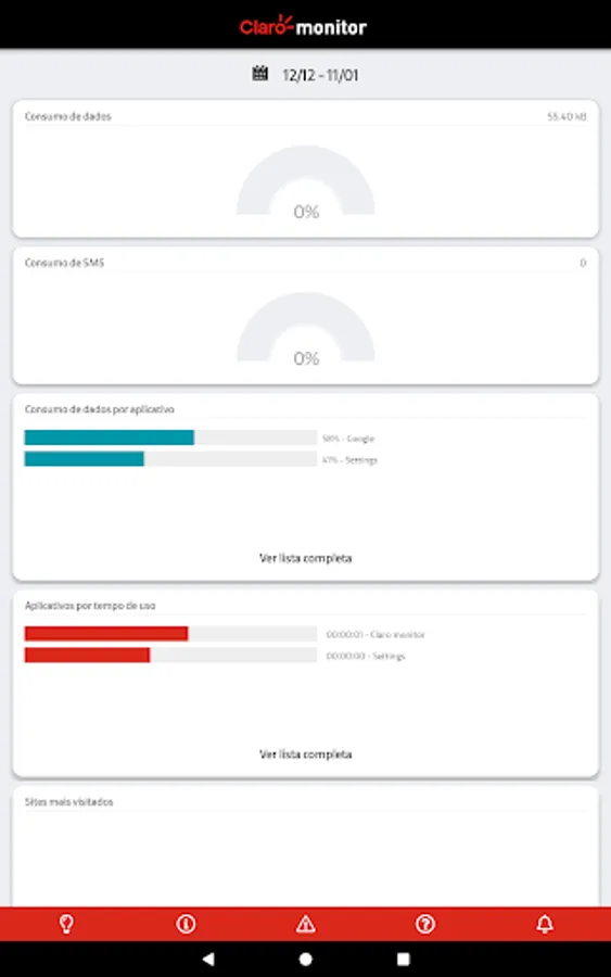 * Web browsing history - will collect data from all sites accessed on the Web Browser and share it with the Claro Monitor Administrator Portal, so that the administrator can analyze and manage information from the accessed sites;