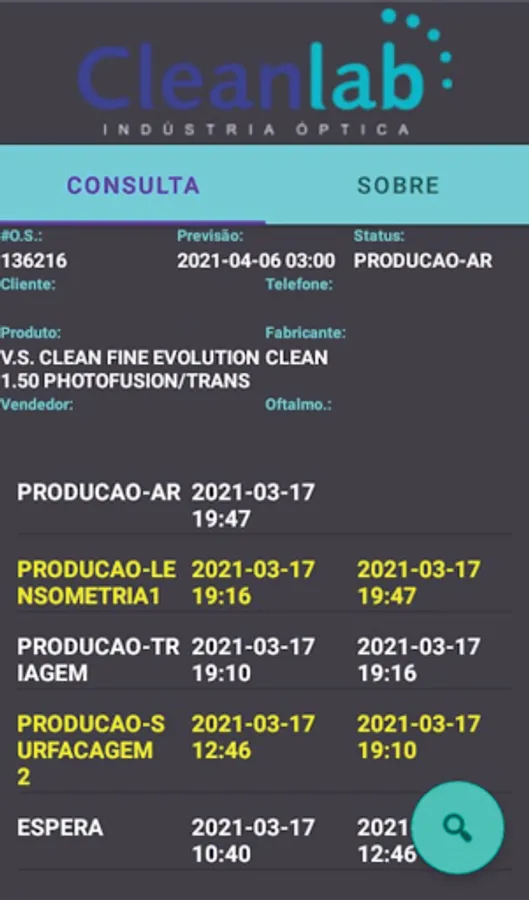 This system was developed so that CleanLab customers can access and see the progress of their O.S. in the laboratory, as well as know delivery forecast and sector tracking, in addition to information from the responsible salesman and ophthalmologist.
