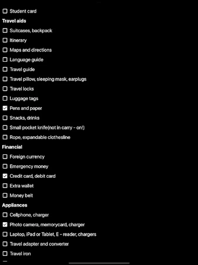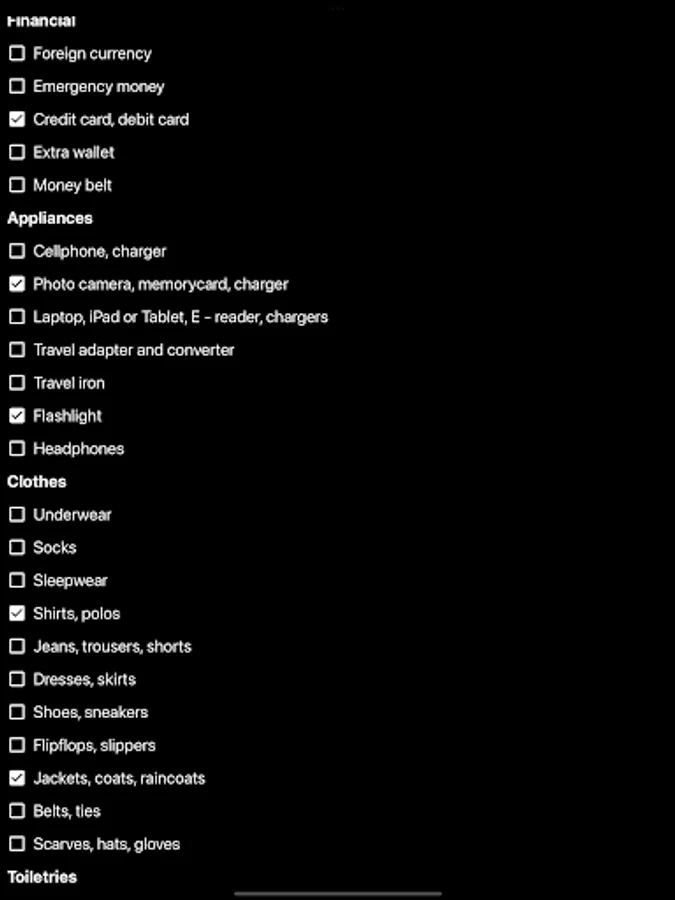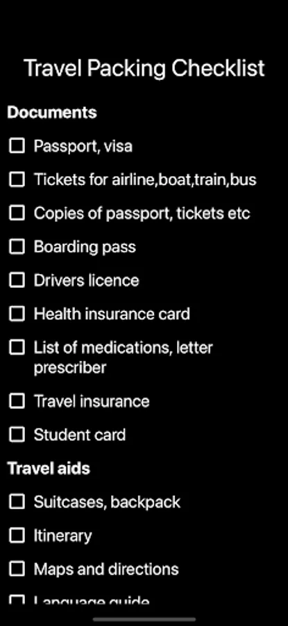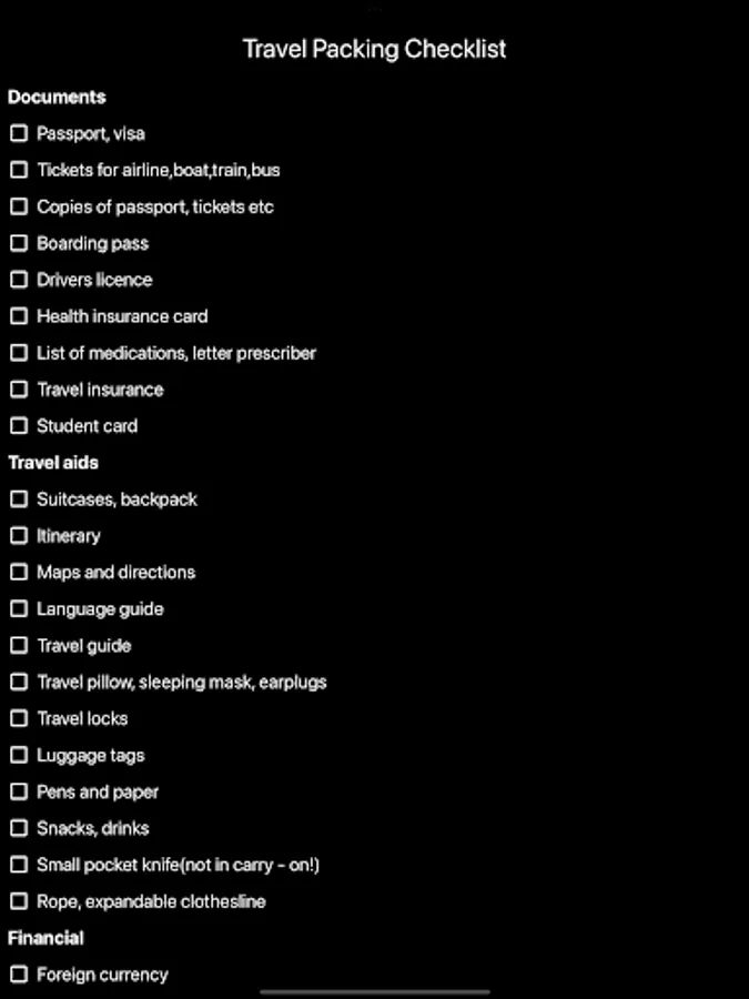 Travel Packing Checklist" app is a handy and user-friendly mobile application designed to help travelers plan and organize their trips more efficiently. Whether you're going on a weekend getaway, a business trip, or an extended vacation, this app aims to simplify the often daunting task of packing by providing a comprehensive checklist tailored to your specific needs.