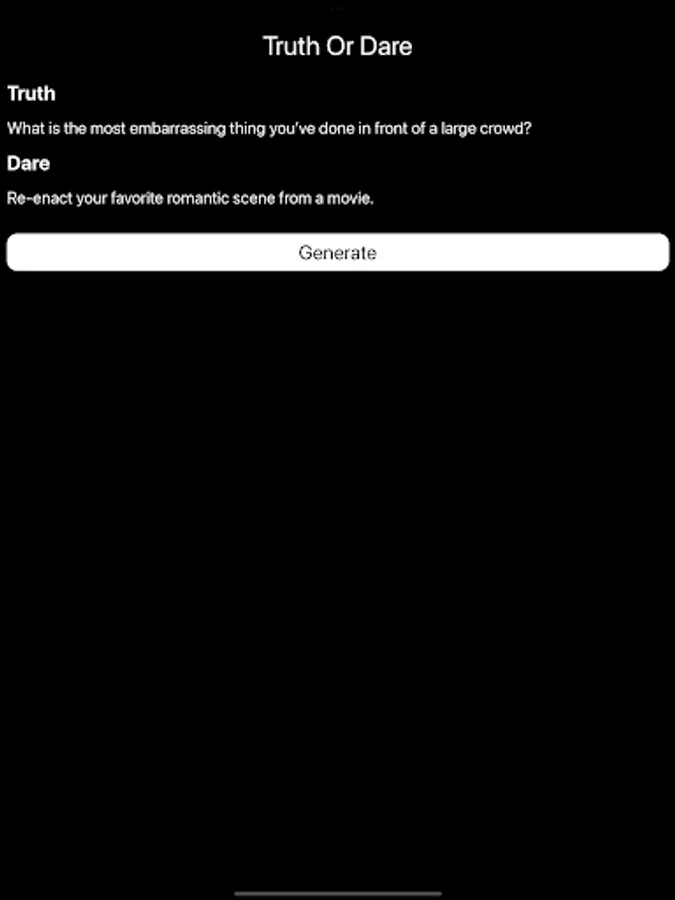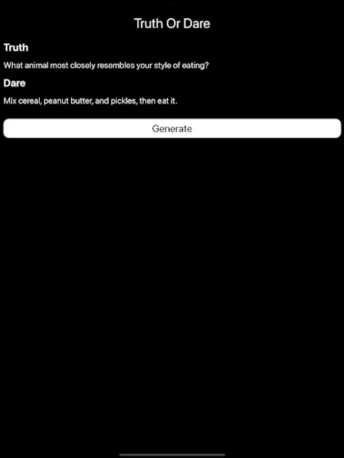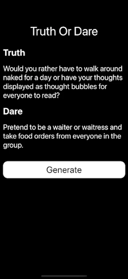 Dare: If the player chooses "Dare," the chooser will give them a challenge to complete. The dare can range from something silly or funny to a more daring and adventurous task. The chosen player has to complete the dare to the best of their ability.