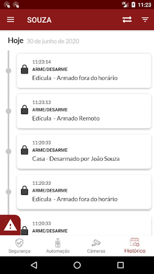 - Receive alerts via Push Notification replicated on smartwatch, speeding up the monitoring of actions and events occurred.