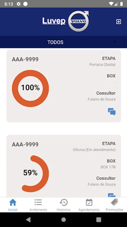 This application is intended for customers of the company Luvep and gathers information about the progress of services provided. Among other features, through it is possible to view in real time the percentage of service performed in each service.