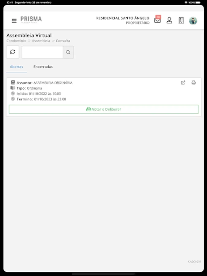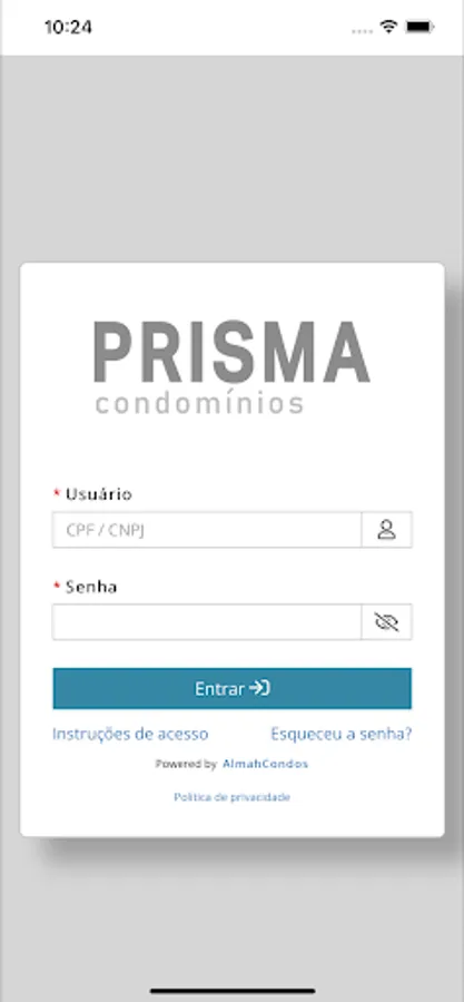 This application is exclusive to users of Prisma Condomínios.