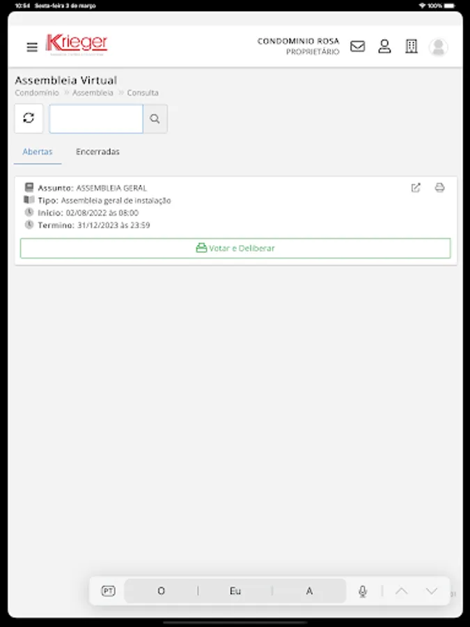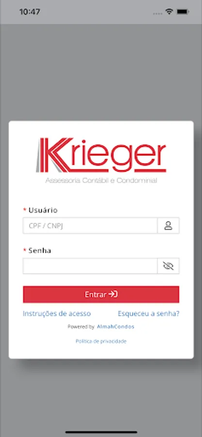 This application is exclusive to users of Krieger Assessoria Contábil e Condominial.