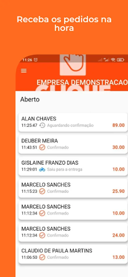Clique gestor is the app responsible for managing orders received by companies registered in the Clique Comida app. Through it you receive orders and control all delivery steps.