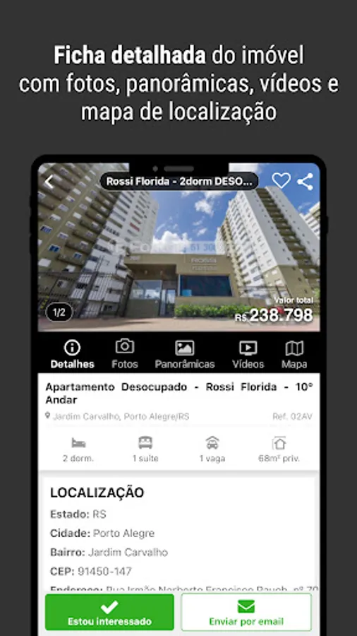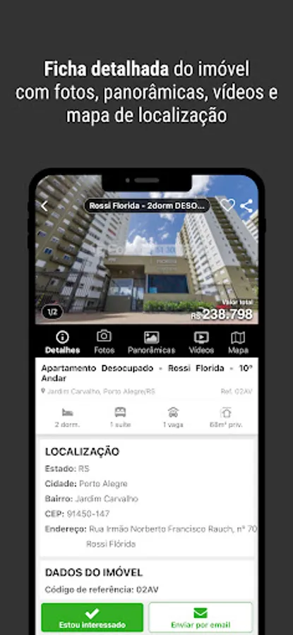 * Detailed information about the property, photos, panoramic, videos and location map;