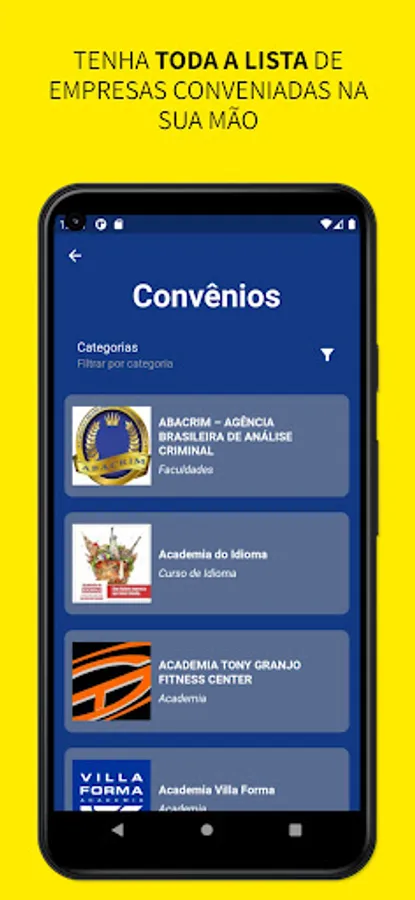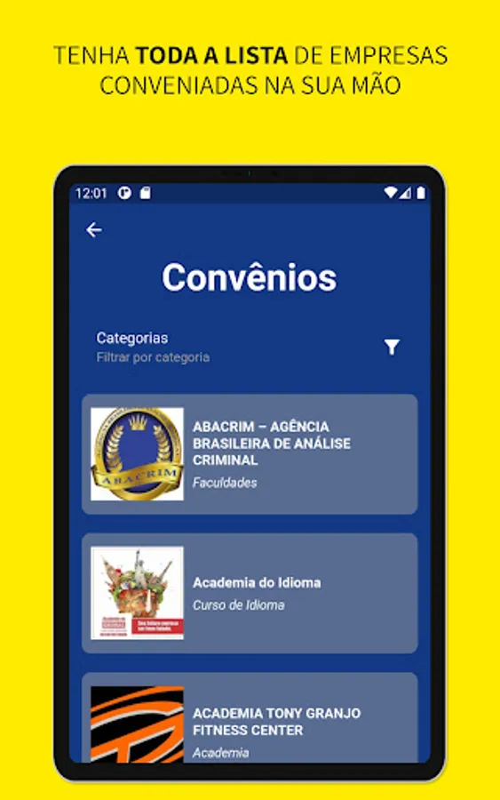 Application that brings together companies affiliated to the Discount Club of the Association of Magistrates of Bahia - AMAB. In addition, members of the association can access their "Digital Card".