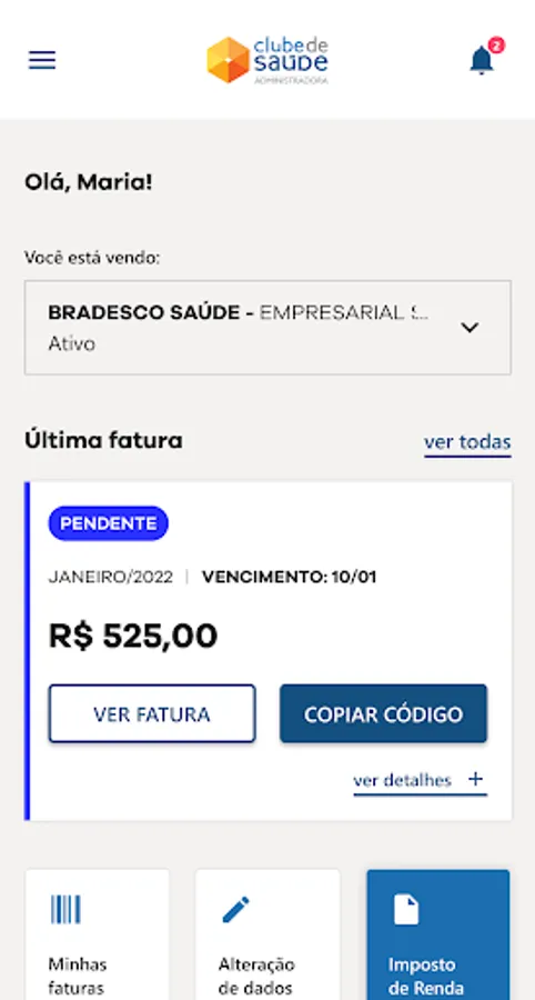 Through the Health Club application it is possible to access your IR statement with ease. In addition, the annual debt settlement statement is also available in the app and can be accessed so you can have more peace of mind and not need to store all the payment receipts for the year.