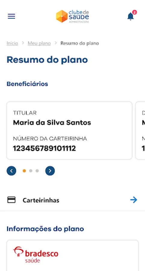 You can check the number of your card in the Health Club application and also the number of cards of people dependent on your plan.