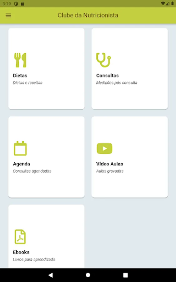 Application where you can check your queries, developments, recipes, e-books, video classes and diets recommended by nutritionists of the Clube da Nutricionista franchise.