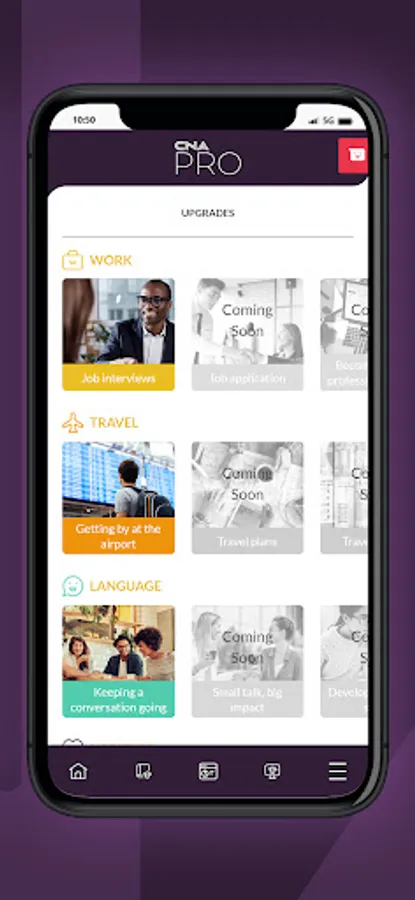 The CNA PRO app helps you learn English for real, with functions and resources that will give your learning a UP!