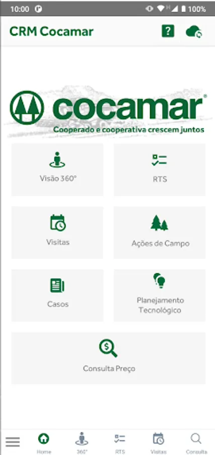 CRM cocamar application, available to all cocamar agronomists who are part of the project.