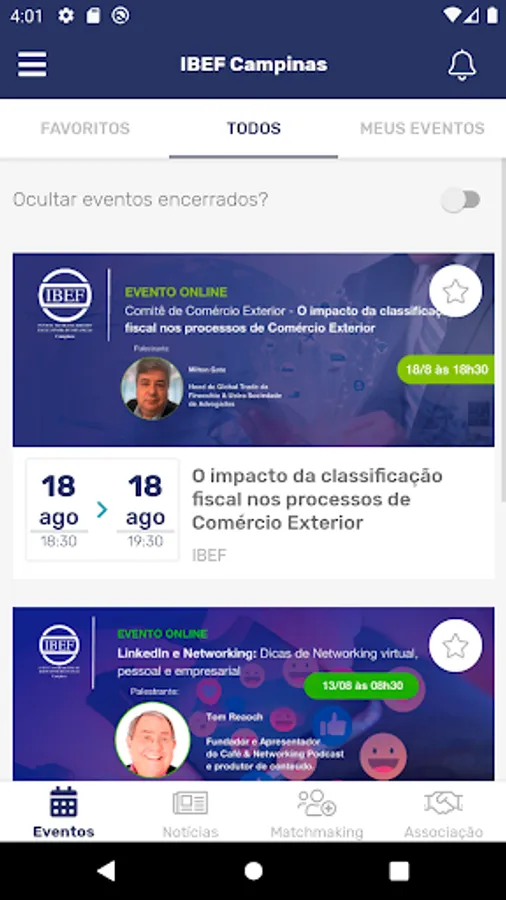 The IBEF Campinas App is a single space that brings together all market audiences and covers their respective interests.