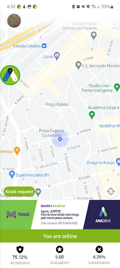 To take a trip through the AMADRIVE app is very simple, easy and practical. Open the application, click on the where to field, enter your location and the final destination of the trip and wait for a partner driver to arrive who will take you to the destination.