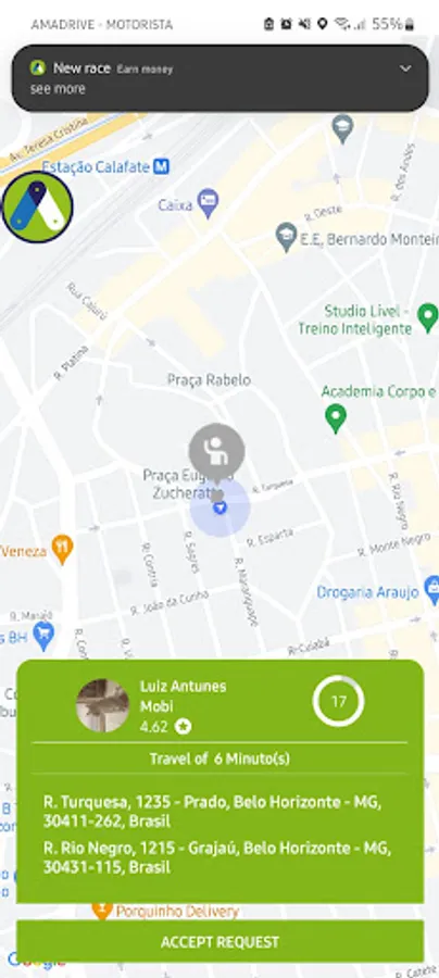 When a trip is requested, the corresponding value appears on the screen, the user already has an estimate of how much he will pay before confirming the trip.