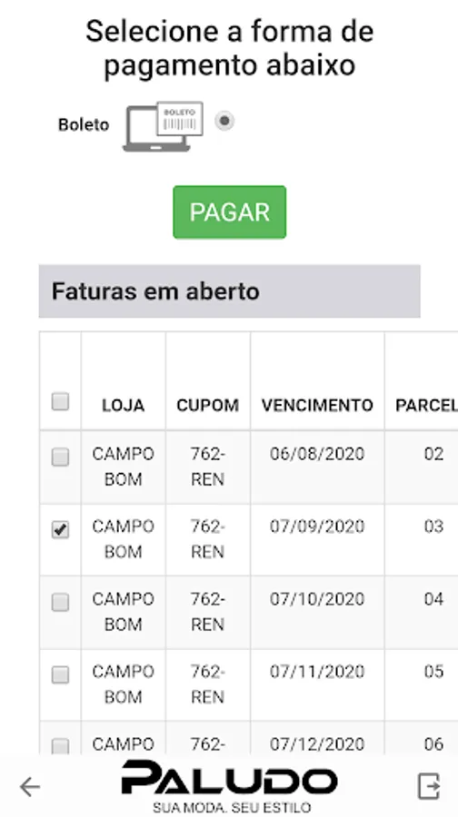 You can consult and pay your installments of the Paludo card and can make purchases on our website, choosing whether you want to receive the product at home or pick up at the store.
